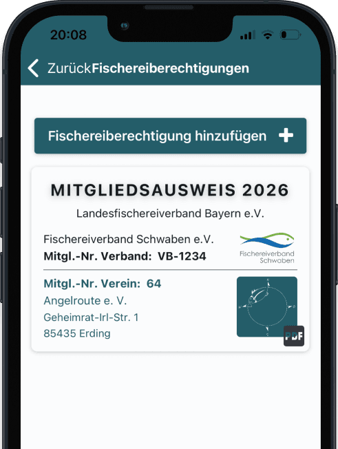 2026 haben wir gemeinsam mit dem Fischereiverband Schwaben den digitalen Mitgliedsausweis eingeführt. Mitgliedsvereine können ihre Verbandsausweise nun ganz einfach digital über die Angelroute-App an ihre Mitglieder ausgeben.
